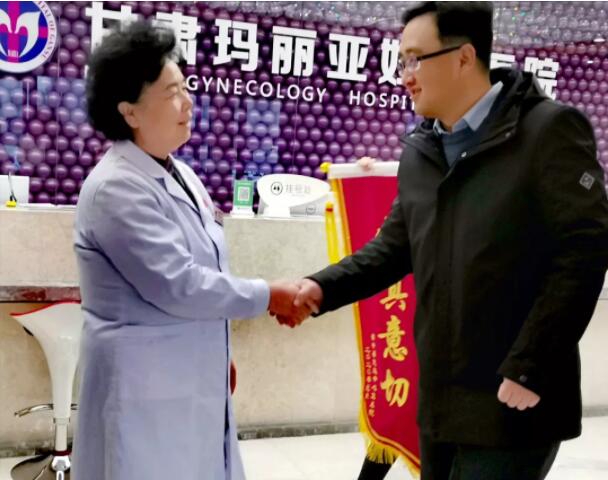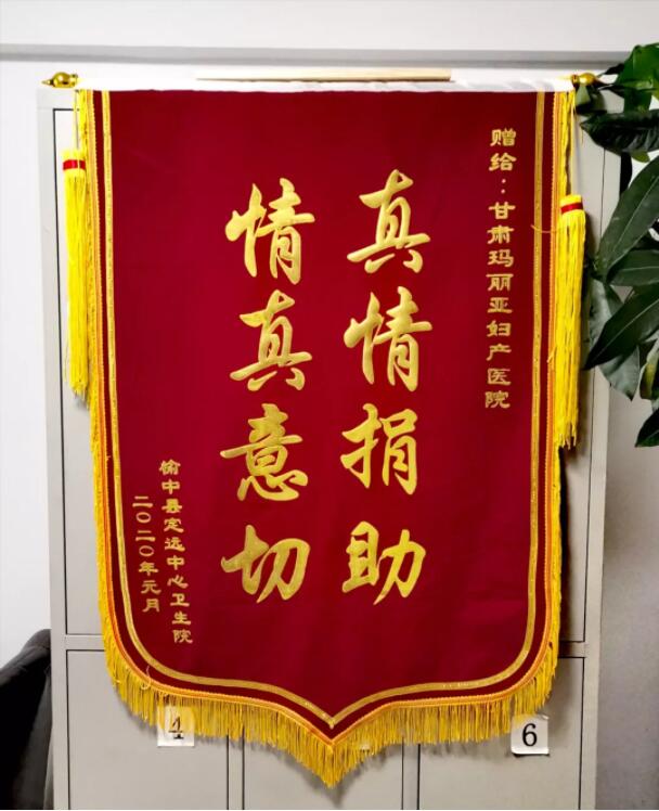 在2020年春节到来之际,榆中县定远中心卫生院领导郝院长一行,专程来到甘肃玛丽亚妇产医院,将一面印有“真情捐助 情真意切”的大红锦旗交到了院长杨春秀手里。郝院长和随行人员与接待他们的医护人员和客服人员说:“我们中心卫生院远离城市,主要是为当地农村农民服务,卫生资源和卫生条件都比较艰苦。这次我们得到了甘肃玛丽亚妇产医院的无私捐助,使我们卫生院的硬件设施得到了很大的改善,全体医护人员因此欢欣鼓舞。玛丽亚妇产医院不仅注重自己医院的发展,而且还帮助支持我们基层卫生院的发展,使我们很感动。我们只有更好地为当地农民群众服务,才能不辜负玛丽亚医院领导和员工的一片爱心”。