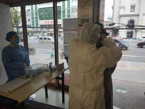 演练由预检分诊初检登记引导、发热门诊采样、患者隔离治疗、场地消杀、防疫装备穿戴等多个场景组成,多科室、系统化模拟了一名近期由国内某中风险地区返乡,有发热、干咳、胸闷、呼吸困难等症状的患者就医、确诊、入院治疗的全过程。