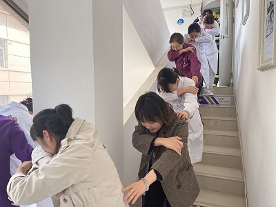 本次演习模拟医院病房发生不明原因起火,科室值班人员发现火情并报警,消防控制室收到报警后立即启动医院消防自动系统,并通知保卫巡逻人员和微型消防站队员前往查看和扑救,消防控制室同时拨打119报警,安全警戒组负责清理路障,保障消防通道畅通,并组织人员从消防通道进行紧急疏散。演习过程中,各小组人员配合默契,动作迅速,有序进行了初期灭火及疏散工作。
